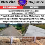 Proyek Rabat Beton di Desa Mekarbaru Tak Sesuai Spesifikasi: Agregat Diganti Abu Batu, Berpotensi Timbulkan Kerugian Negara