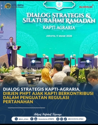 Tegarnews.co.id – Jakarta, 9 Maret 2026 |Direktur Jenderal Penetapan Hak dan Pendaftaran Tanah (Dirjen PHPT) Kementerian Agraria dan Tata Ruang/Badan Pertanahan Nasional (ATR/BPN), Asnaedi, memberikan sambutan dalam acara Dialog Strategis dan Silaturahmi Ramadan KAPTI-AGRARIA pada Jumat (06/03/2026). Di kesempatan ini, ia mengajak para profesional dan alumni di bidang agraria/pertanahan untuk ikut berkontribusi dalam penguatan regulasi […]