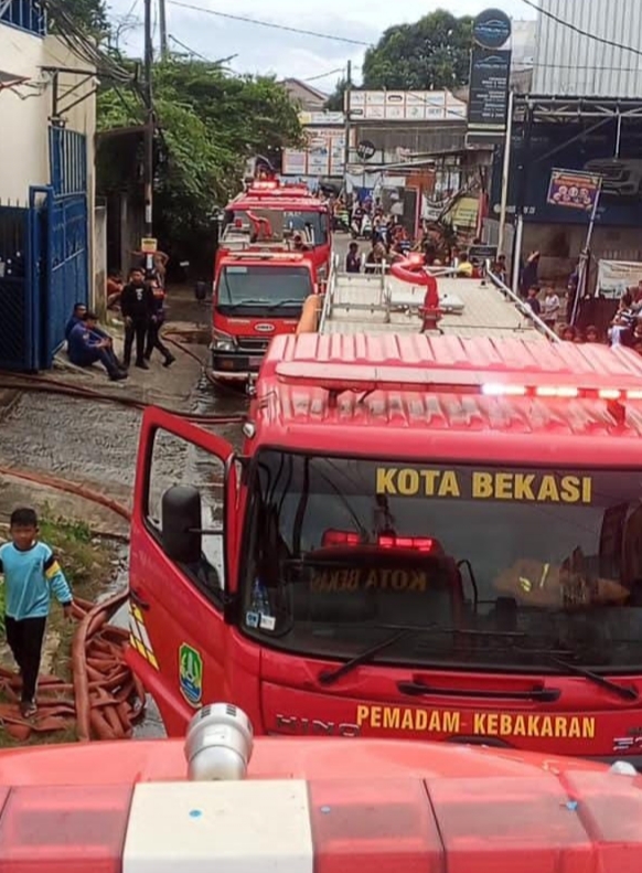 Dinas Pemadam Kebakaran (Damkar) Kota Bekasi segera mengerahkan pemadam kebakaran, sekitar sepuluh