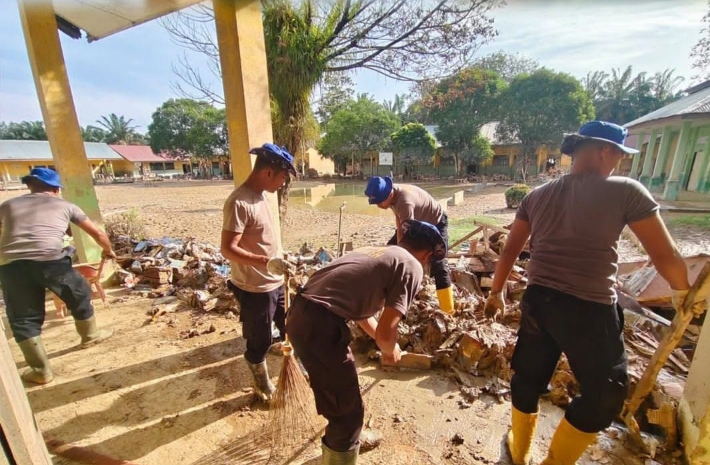 Dengan menggunakan peralatan sederhana, para personel bersama instansi terkait bahu-membahu membersihkan lumpur, sampah, serta material kayu yang terbawa arus banjir. Aksi gotong royong ini menjadi bentuk kepedulian Polri terhadap dunia pendidikan sekaligus wujud nyata kehadiran negara di tengah masyarakat yang terdampak bencana,” tutup Kabid Humas.