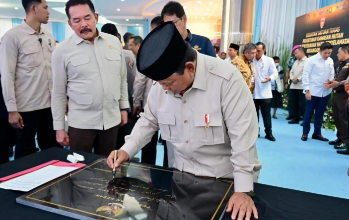 Ada yang menarik pada acara penyerahan laporan capaian hasil Satuan Tugas Penertiban Kawasan Hutan (Satgas PKH) dan penyelamatan keuangan negara tahun 2025. Dalam acara yang digelar di Gedung Utama Kompleks Kejaksaan Agung Republik Indonesia, Jakarta, pada Rabu, 24 Desember 2025 tersebut, Presiden Prabowo Subianto menuliskan pesan khusus tentang integritas dan keberanian penegak hukum dalam sebuah prasasti.