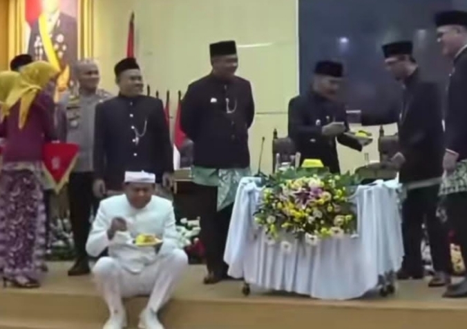 Pemandangan tersebut bikin tamu undangan jadi Salfok (salah fokus). Hal itu terjadi saat pelaksanaan Rapat Paripurna DPRD Kabupaten Bekasi dengan agenda peringatan Hari Jadi ke 75 Kabupaten Bekasi di kantor DPRD Bekasi pada Jum’at (15/8/2025) siang.
