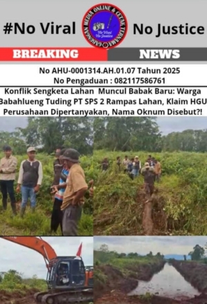 Tegarnews.co.id-Nagan Raya 27 September 2025| (GMOCT) GMOCT Gabungan Media Online dan Cetak Ternama mendapatkan informasi dari media online Bongkarperkara yang tergabung di GMOCT perihal Konflik agraria di Desa Babahlueng, Kecamatan Darul Makmur, Kabupaten Nagan Raya kembali mencapai titik didih. Warga desa menuduh perusahaan kelapa sawit PT Surya Panen Subur (SPS) 2 melakukan perampasan lahan yang […]