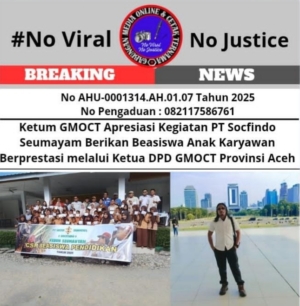 Ketum GMOCT Apresiasi Kegiatan PT Socfindo Seumayam Berikan Beasiswa Anak Karyawan Berprestasi melalui Ketua DPD GMOCT Provinsi Aceh