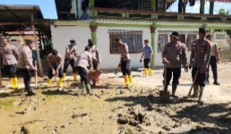 Wujud Kepedulian Pasca Banjir, Personel Polres Pidie Laksanakan Pembersihan Meunasah di Gampong Rambot Adan