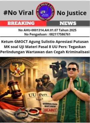 Ketum GMOCT Agung Sulistio Apresiasi Putusan MK soal Uji Materi Pasal 8 UU Pers: Tegaskan Perlindungan Wartawan dan Cegah Kriminalisasi