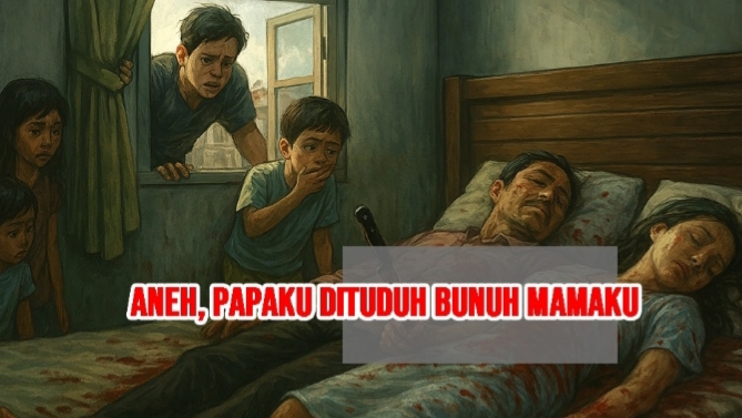 Pemandangan di depan mata sungguh mengerikan. Papa dan mama terkapar berdampingan, berlumuran darah. Sebilah pisau menancap di tubuh papa, sementara tangan mama masih menggenggam pisau itu. Bagi pikiranku yang masih kanak-kanak, posisi itu jelas janggal. Bagaimana mungkin dikatakan mereka berkelahi, sementara tubuh mereka terbaring berdampingan seperti orang tidur?
