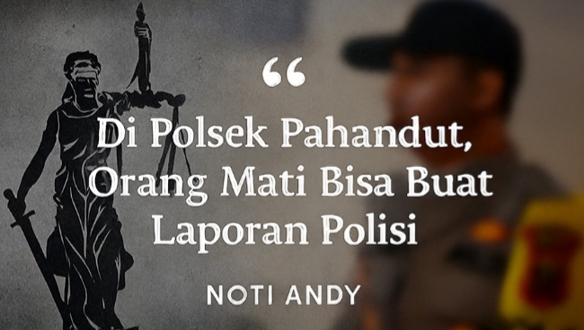 Peristiwa ini terjadi di Polsek Pahandut, Kota Palangka Raya, ketika saya, Noti Andy, menerima surat pemanggilan polisi terkait klarifikasi hutang. Padahal, kasus tersebut jelas merupakan perkara perdata yang masih dalam proses cicilan. Anehnya, surat pemanggilan itu menyebutkan bahwa pelapor adalah almarhum Rada, seseorang yang sudah meninggal dunia. Bagaimana mungkin orang yang sudah tiada bisa membuat laporan polisi?