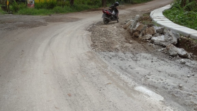 Diduga Akibat Sisa Serpihan Proyek Betonisasi Jalan, Seorang Pengendara Motor Terjatuh