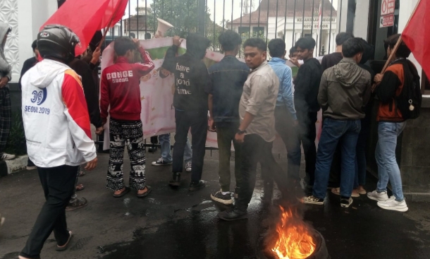Kepulan asap hitam membumbung tinggi di depan kantor kejaksaan, sementara aparat kepolisian melakukan pengamanan ketat untuk memastikan situasi tetap terkendali. Massa membentangkan spanduk dan poster berisi tuntutan transparansi dan penegakan hukum tanpa kompromi.