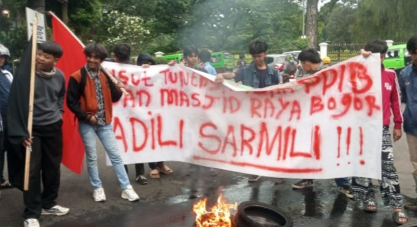 Aksi yang dimulai sekitar pukul 17.00 WIB itu diwarnai pembakaran ban bekas di depan gerbang kejaksaan sebagai simbol protes keras atas dugaan penyimpangan dana hibah Tahun Anggaran 2024 yang diperuntukkan bagi Masjid Raya Kota Bogor (PPIB).