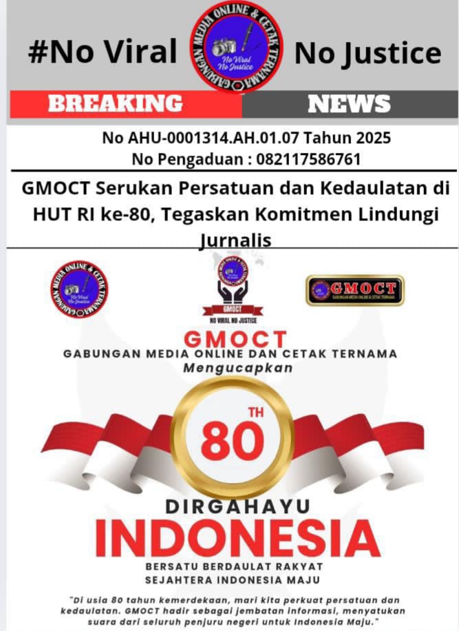 GMOCT Serukan Persatuan dan Kedaulatan di HUT RI ke-80, Tegaskan Komitmen Lindungi Jurnalis