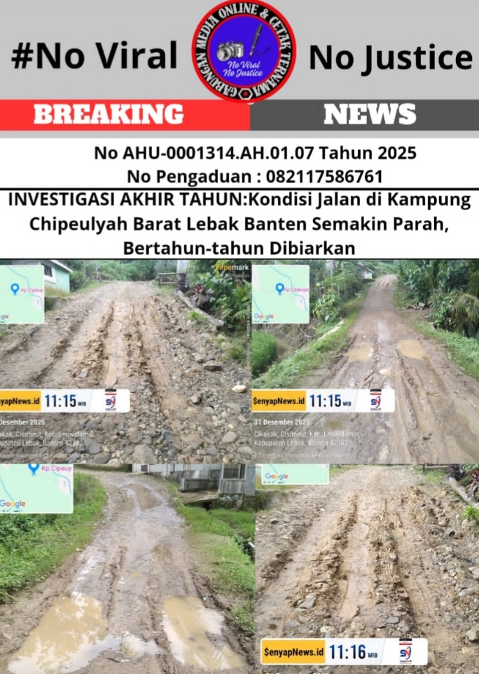Kerusakan akses jalan di Kampung Chipeulyah Barat, RT/RW 002/006 Desa Cisimeut, Kecamatan Leuidamar, Kabupaten Lebak, semakin memburuk. Bertahun-tahun dibiarkan tanpa perbaikan, jalan yang menjadi jalur utama mobilitas masyarakat sekitar kini dipenuhi barisan lubang besar yang seperti kubakan kerbau, genangan air di mana-mana, dan permukaan bergelombang yang membahayakan aktivitas pengguna jalan, (31/12).