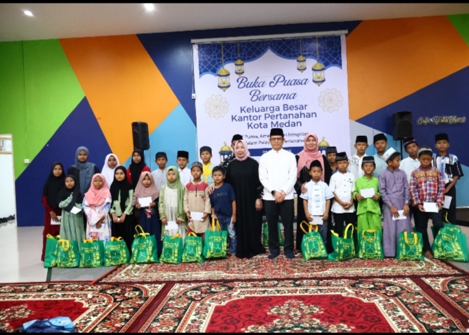 Dalam rangkaian acara, Kantor Pertanahan Kota Medan juga memberikan santunan kepada anak-anak yatim sebagai wujud kepedulian sosial dan bentuk berbagi kebahagiaan di bulan Ramadhan. Kegiatan ini diharapkan dapat memberikan manfaat serta membawa kebahagiaan bagi anak-anak yang menerima santunan.