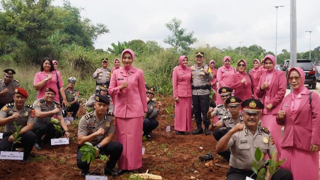 Foto: penanaman pohon di sekitaran rumah susun (rusun) anggota Polri Polres Bogor.