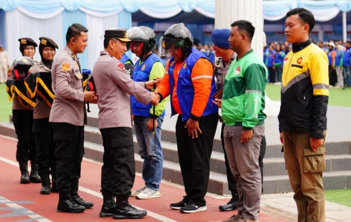Kapolri Pimpin Apel Ojol Kamtibmas di Jabar: Bersatu Padu Jaga Keamanan