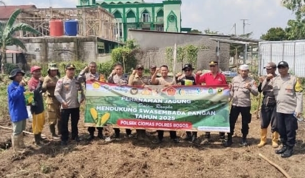 Tegarnrnews.co.id-Bogor, 2 Nopember 2025| Dalam rangka mendukung program pemerintah di bidang ketahanan pangan nasional, Kapolsek Ciomas KOMPOL Iwan Wahyudi, S.H., M.H. bersama personel Polsek Ciomas, Polres Bogor-Polda Jabar, melaksanakan kegiatan penanaman jagung hibrida di wilayah Kecamatan Ciomas, Kabupaten Bogor.