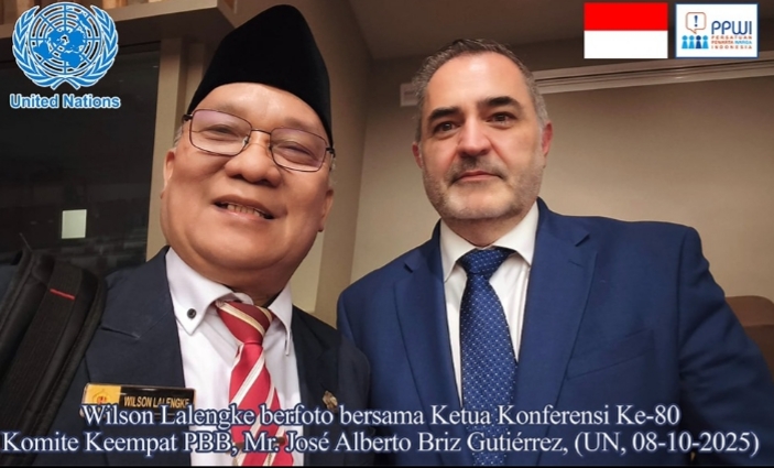 Rekomendasinya, yang digambarkan oleh Ketua Konferensi sebagai “menginspirasi,” dipuji karena kedalaman dan relevansinya dengan upaya PBB yang sedang berlangsung. “Wawasan yang dibagikan oleh petitioner Wilson Lalengke menjadi masukan penting bagi penyusunan kebijakan kami,” ujar Briz Gutiérrez langsung kepada Ketua Umum Persatuan Pewarta Warga Indonesia (Ketum PPWI) itu usai konferensi, Rabu, 08 Oktober 2025 lalu.