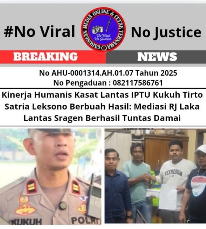 Kinerja Humanis Kasat Lantas IPTU Kukuh Tirto Satria Leksono Berbuah Hasil: Mediasi RJ Laka Lantas Sragen Berhasil Tuntas Damai