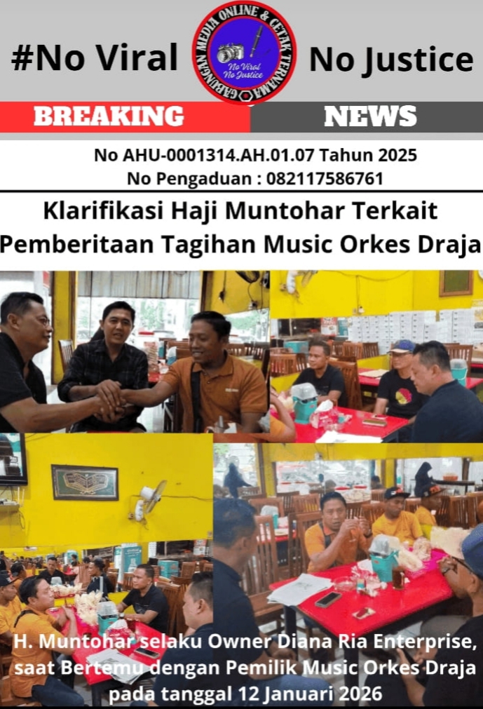 Tegarnews.co.id-Semarang, 13 Januari 2026 (GMOCT)| Haji Muntohar, selaku Owner Diana Ria Enterprise, mengeluarkan klarifikasi terkait pemberitaan yang tayang di salah satu media online pada 11 Januari 2026 dengan judul “Parah! Seorang Anggota Dewan Dari Partai Gerindra Belum Membayar Gelar Music Orkes Draja”.