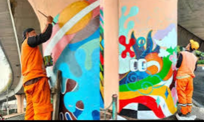 Kolong Fly Over Pondok Kopi Dihias Lukisan Mural Warna-Warni, Biar Lebih Bagus!