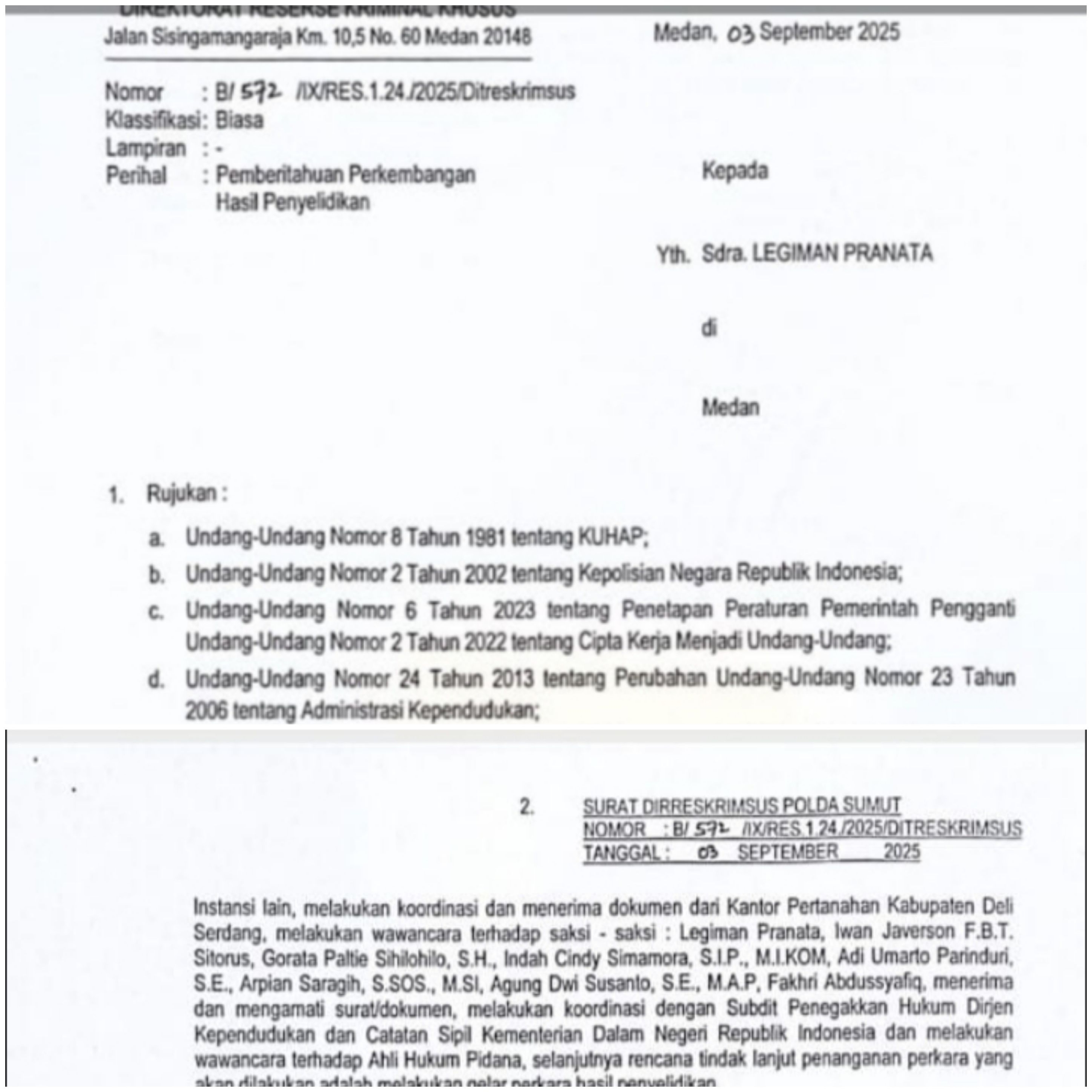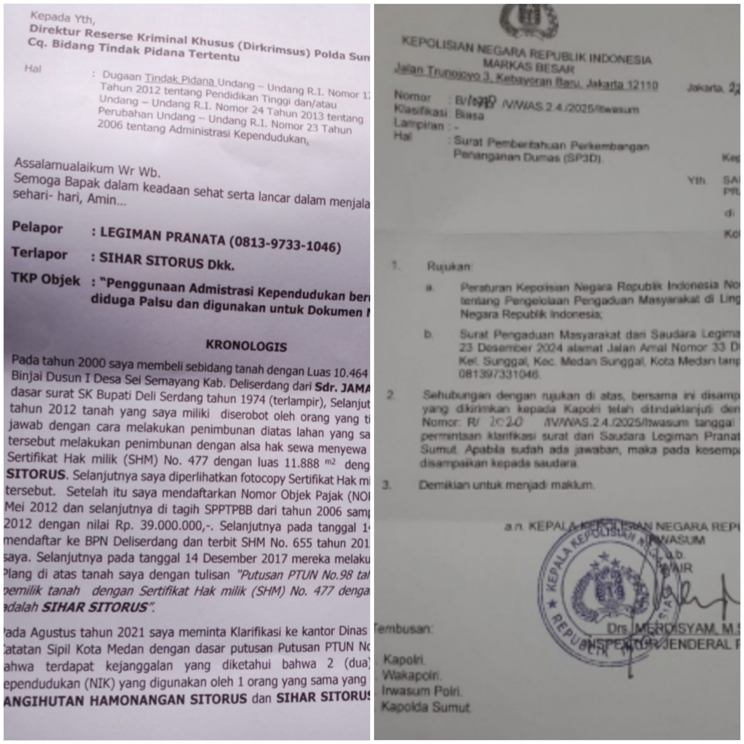 Selain itu, Legiman juga membeberkan kalau kasus tersebut sudah dilaporkan dan dalam proses penyelidikan Direktorat Reserse Kriminal Khusus (Ditreskrimsus) Polda Sumatera Utara, hingga diterbitkannya Surat Pemberitahuan Perkembangan Hasil Penyelidikan (SP2HP). Namun ironisnya, hingga saat ini proses penyidikannya masih saja berjalan stagnan alias jalan di tempat!?.