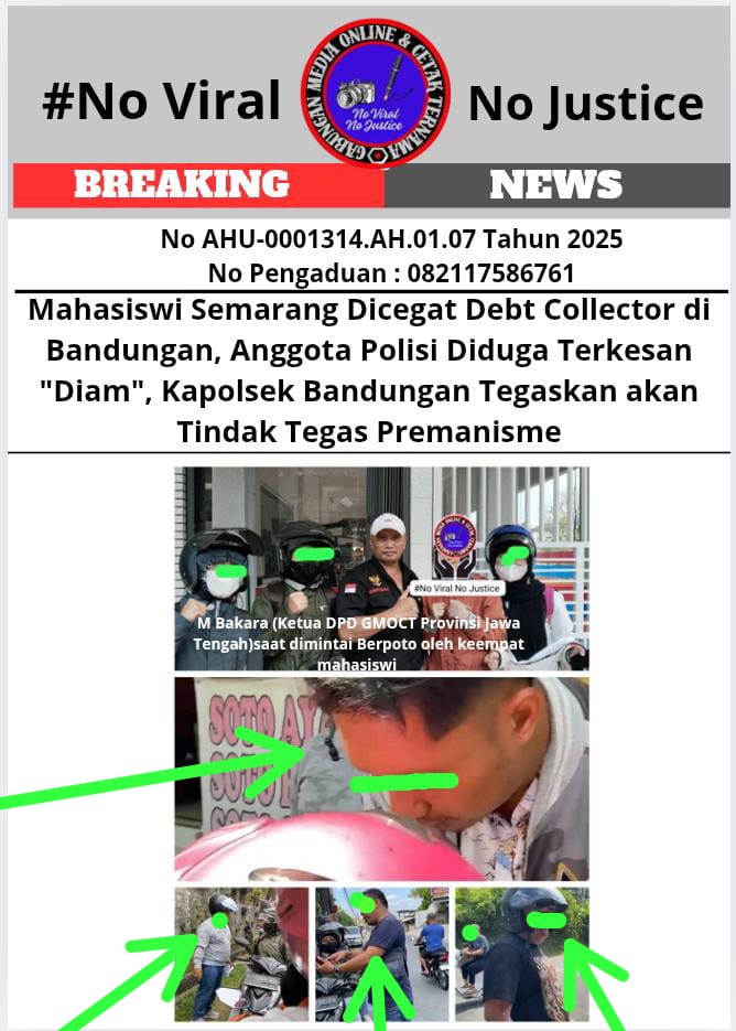 Tegarnews.co.id—Bandungan, Semarang 24 Juli 2025| Empat mahasiswi asal Kota Semarang mengalami kejadian mencekam saat dicegat oleh debt collector (DC) di sekitar Jalan Bandungan-Bergas, tepatnya di wilayah Pakopen, Rabu (23/7/2025) pukul 13.55 WIB. Kejadian ini menimbulkan pertanyaan besar tentang penegakan hukum di wilayah tersebut.