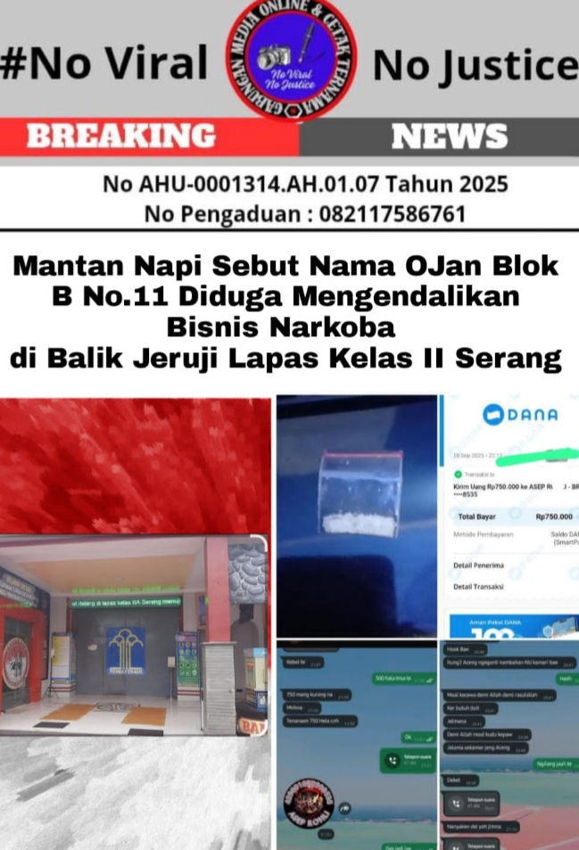 Mantan Napi Sebut Nama OJan Blok B No.11 Diduga Mengendalikan Bisnis Narkoba di Balik Jeruji Lapas Kelas II Serang