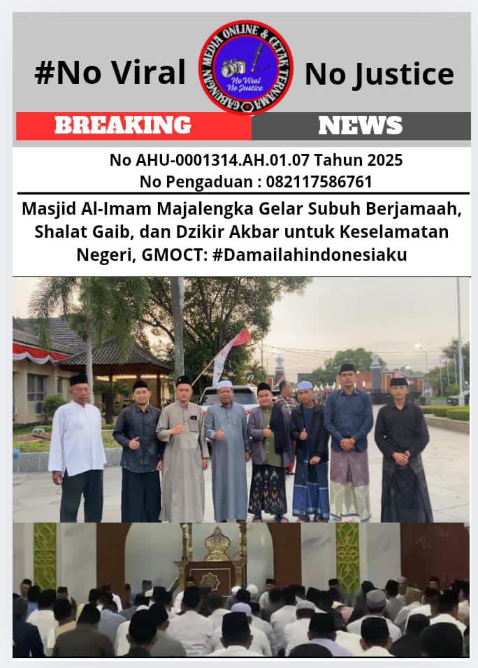Masjid Al-Imam Majalengka Gelar Subuh Berjamaah, Shalat Gaib, dan Dzikir Akbar untuk Keselamatan Negeri, GMOCT: #Damailahindonesiaku