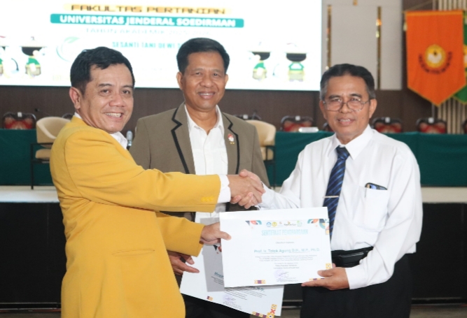 Hadir juga dalam kesempatan itu, Dekan Fakultas Pertanian Unsoed Prof. Dr. Ir. Sakhidin, M.P, dan sejumlah dosen lainnya.