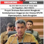 Tegarnews.co.id-Kabupaten Bandung, Jawa Barat Jum’at 20 Juni 2025|(GMOCT)-Proyek normalisasi drainase di Desa Rancaekekwetan, Kecamatan Rancaekek, Kabupaten Bandung, yang dimulai Maret 2025, kini mangkrak dan menimbulkan keresahan warga. Informasi yang diperoleh Gabungan Media Online dan Cetak Ternama (GMOCT) dari media online Matainvestigasi.com menunjukkan proyek tersebut terhenti setelah tahap pembongkaran saluran air, tanpa ada kelanjutan pekerjaan. Kondisi […]