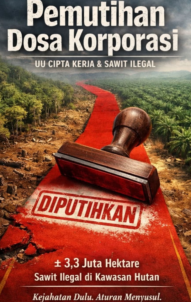 “Pemutihan” Dosa Korporasi: Mengurai Karpet Merah UU Cipta Kerja untuk 3,3 Juta Hektare Sawit Ilegal