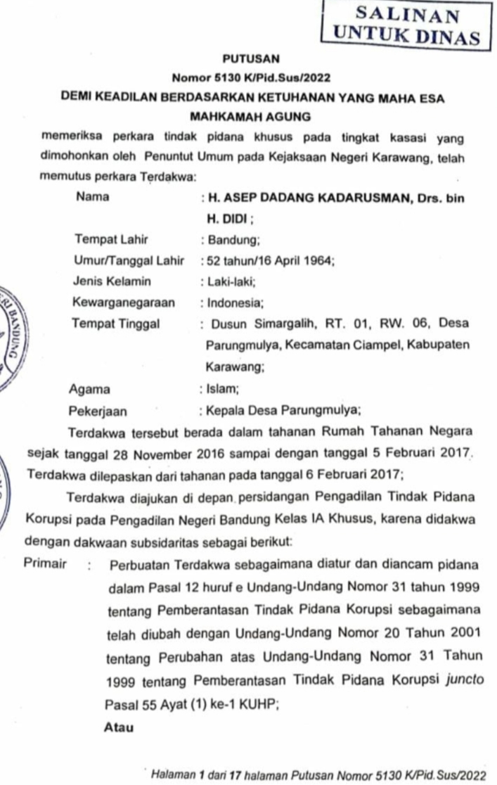 Perjalanan Panjang Kades Parung Mulya Dipengadilan Tipikor Bandung Berakhir Penjara