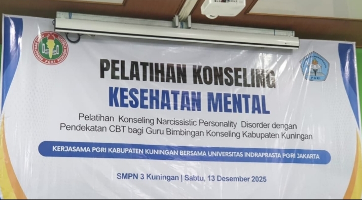 Tegarnews.co.id-Kuningan, 13 Desember 2025| Dalam upaya meningkatkan kompetensi Guru Bimbingan dan Konseling (BK) dalam menangani permasalahan kesehatan mental peserta didik, PGRI Kabupaten Kuningan bekerja sama dengan Universitas Indraprasta PGRI (Unindra), Jakarta menyelenggarakan Pelatihan Konseling Kesehatan Mental. Kegiatan ini dilaksanakan di SMP Negeri 3 Kuningan pada Sabtu, 13 Desember 2025.