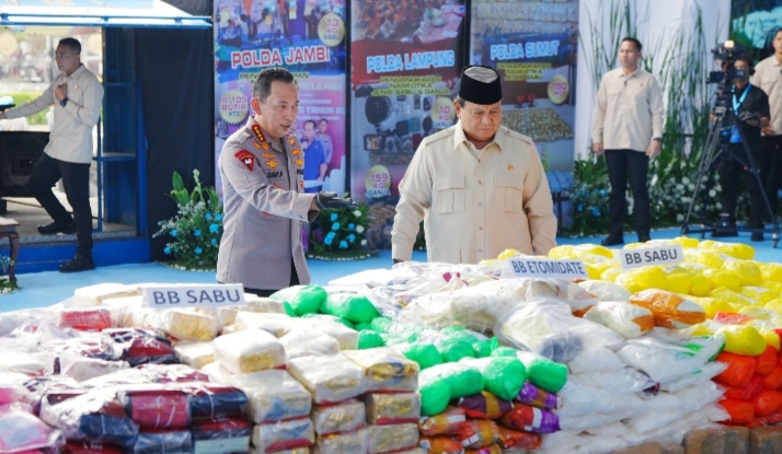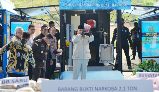 Pemusnahan barang bukti narkoba sebanyak 214,84 ton tersebut dihadiri langsung oleh Presiden Prabowo Subianto sekaligus memimpin pemusnahan barang haram tersebut di Lapangan Bhayangkara, Jakarta Selatan, Rabu (29/10/2025).