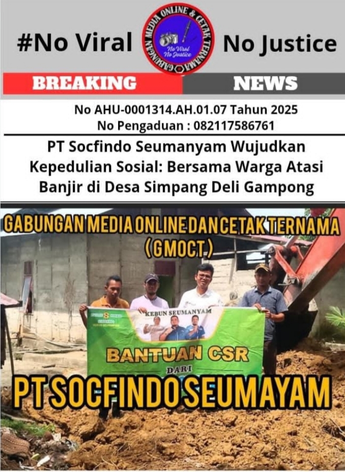 Tegarnews.co.id-Nagan Raya, 7 Oktober 2025| Sebagai wujud nyata kepedulian terhadap masyarakat dan lingkungan, PT Socfindo Seumanyam kembali menunjukkan komitmennya melalui program Corporate Social Responsibility (CSR). Kali ini, perusahaan melakukan pembersihan dan pengerukan parit utama di Desa Sara Bate (Simpang Deli Gampong), guna mengatasi persoalan banjir yang selama ini mengancam pemukiman warga.