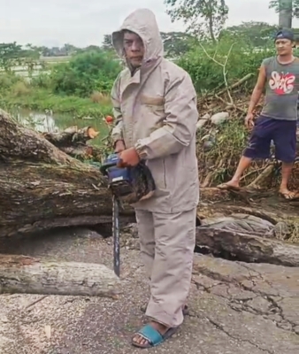 Menerima laporan dari warga, Kanit Intelkam Polsek Pebayuran, AIPTU Abdurahman, segera mendatangi lokasi. Ia langsung berkoordinasi dengan Sertu Amar selaku Babinsa dari Koramil 11 Pebayuran. Keduanya bersama warga setempat tanpa ragu turun tangan membersihkan material pohon yang menutup jalan.