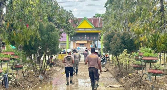 Bantuan Polri menjadi titik terang di tengah keputusasaan. Personel Polres Langsa bersama Polsek Tualang Cut serta satu pleton Brimob datang dengan jumlah yang cukup banyak. Mereka menyingsingkan lengan baju, mengangkat lumpur dari ruang kelas, perpustakaan, dan jalur masuk sekolah. Meja, kursi, serta buku-buku yang basah diangkat ke halaman sekolah. Semua dilakukan dengan penuh kepedulian, seolah sekolah itu adalah milik mereka sendiri.