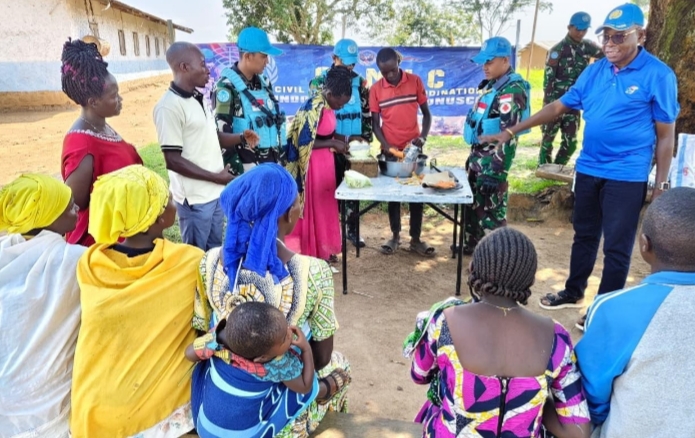 Dalam pertemuan tersebut, prajurit mendengarkan aspirasi masyarakat, menerima laporan mengenai kondisi terkini desa, serta menyampaikan peran MONUSCO dalam membangun lingkungan yang aman.