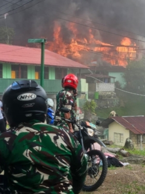 Quick Respon Polri Bantu Padamkan Kebakaran di Kodam Lama Jayapura