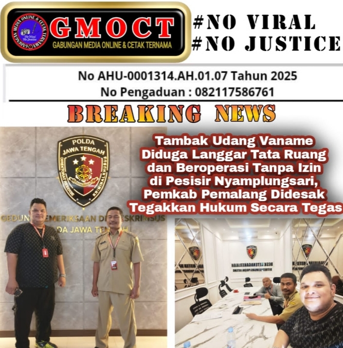 Atas dasar tersebut, GMOCT bersama kuasa hukum Kepala Desa Nyamplungsari, Bambang L.A. Hutapea, S.H., M.H., C.Med., mendesak Pemerintah Kabupaten Pemalang untuk segera melakukan evaluasi menyeluruh terhadap aktivitas tambak udang vaname di kawasan tersebut.