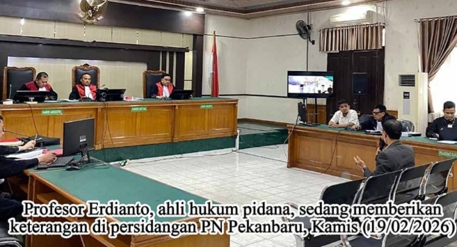 Tegarnews.co.id-Pekanbaru, 20 Februari 2026| Persidangan kasus kriminalisasi aktivis lingkungan dan anti korupsi, Jekson Sihombing, kini mencapai titik nadir yang mengungkap rapuhnya fondasi dakwaan Jaksa Penuntut Umum (JPU). Dalam sidang yang digelar Kamis, 19 Februari 2026, di Pengadilan Negeri Pekanbaru, keterangan ahli hukum pidana, Profesor Erdianto, mengguncang ruang sidang dengan pernyataan lugas: “Tidak ada pasal yang dapat menjerat perbuatan Jekson.”